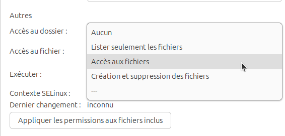 Note : le fichier de configuration de samba /etc/samba/smb.conf n'est pas modifié par le partage de dossiers avec l'extension caja-share. Mais pour chaque dossier partagé, le système crée un fichier texte dans /var/lib/samba/usershares qui contient les paramètres du partage.